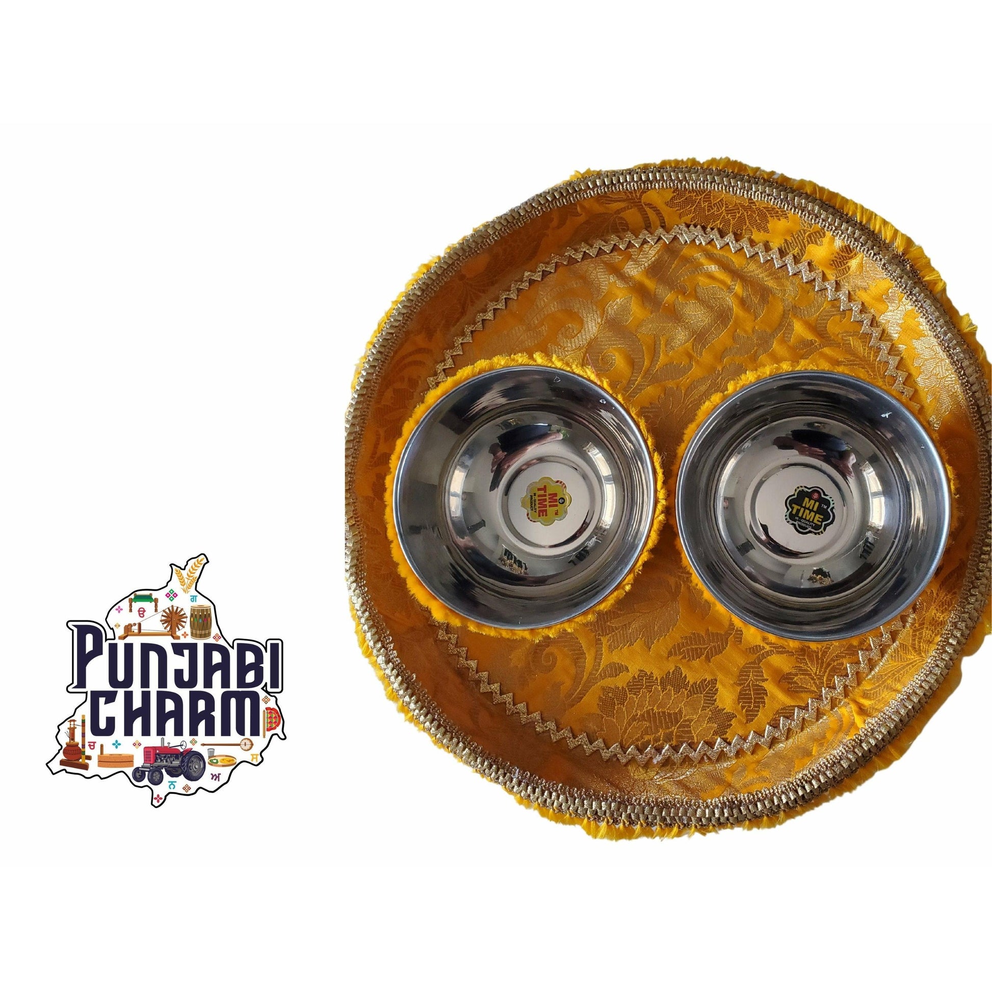 Mehndi / Haldi / Batna Shagun Designer Plates with two Katoris / Kolis